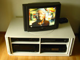 - weiß lackiert - seitlich versenkbare Drehtüren - verstellbare Geräteböden - eingelassener TV-Drehteller - Zwischenraum zum Verstauen der Kabel - auf Rollen
